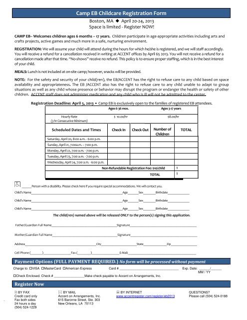 10.9.2.6 child care registration form rev. Child's name last first middle. Data collected through our online childcare registration forms is mapped to your ezcare management system by our forms experts, so there's no need for extra data entry.
