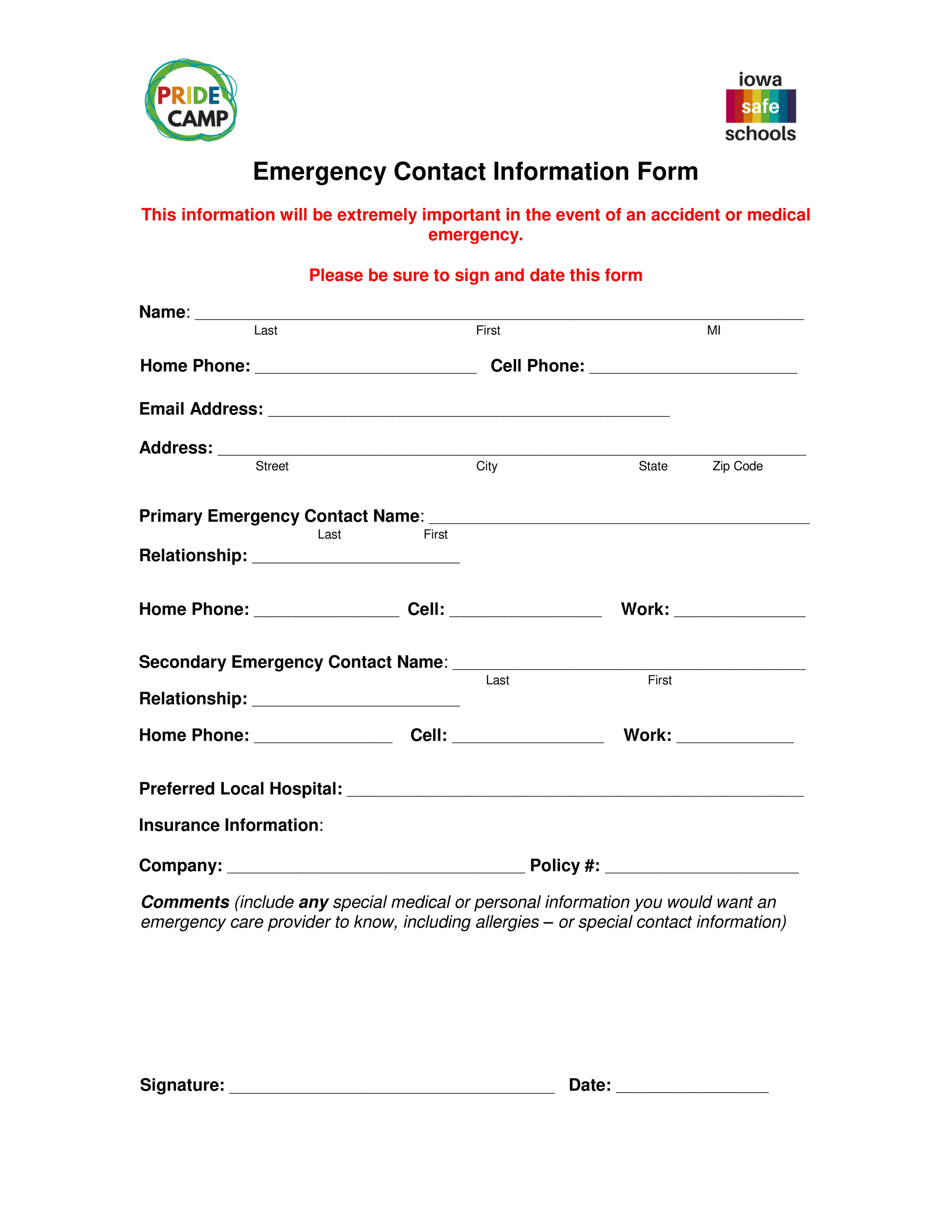 The following forms and templates are for use by local authority emergency operation centres (eocs) during my em resources is a free online resource centre for emergency management and public safety professionals. Emergency contact form for nanny babysitter or daycare: If you need to provide any additional relevant information select 'add additional information' (this is optional).