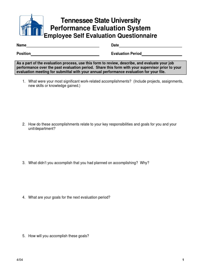 Download Employee Self Evaluation Forms