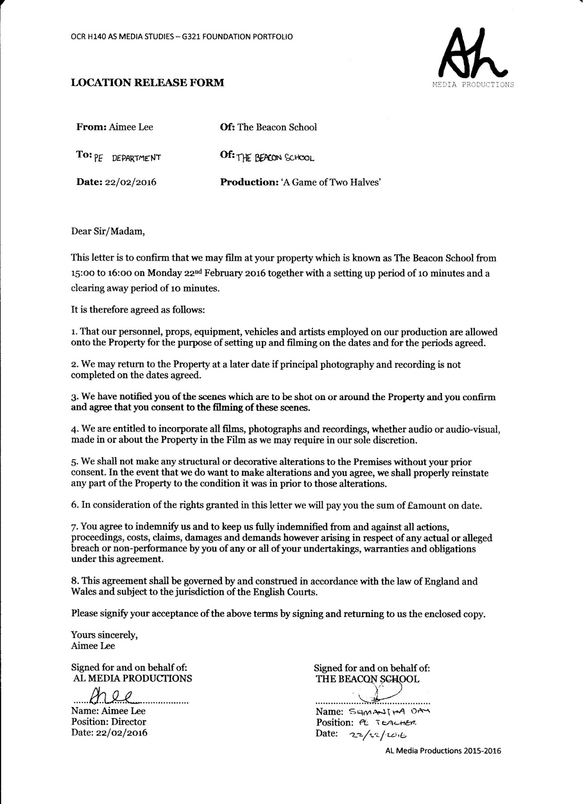 Location relase form.pdf (dependent films). Location relase form.pdf (dependent films). Every day film production forms needs to completed, the callsheet, camera timesheets, catering schedule, crew contact lists, continuity reports and so many more to keep your shoot organized and on track. Press release checklist & templates.