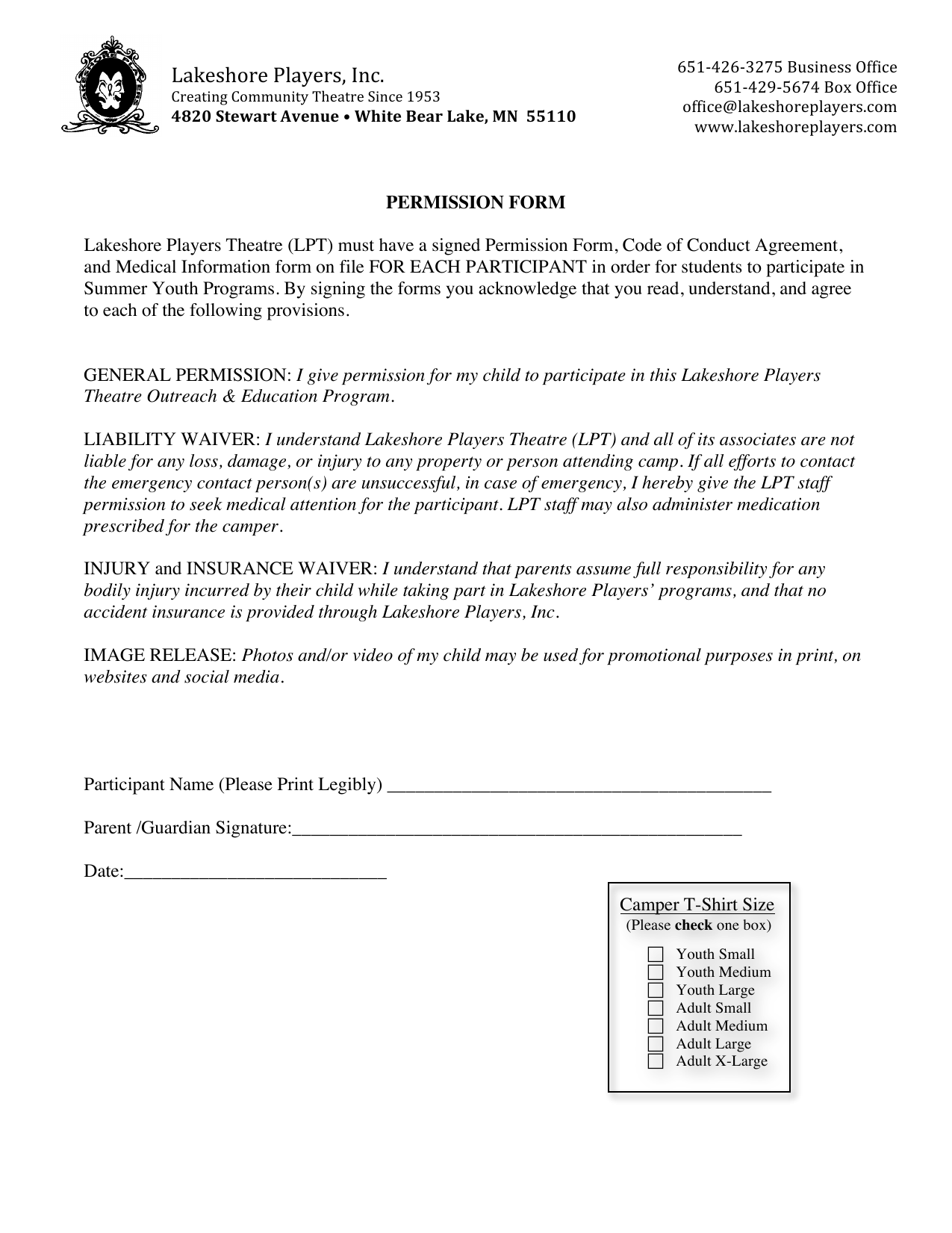 A medical release form gives doctors permission to treat your child if you can't be reached in an emergency.