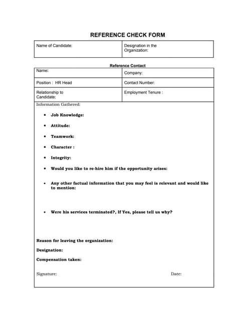 / 12+ reference checking forms. The following is a list of sample questions that can be tailored to your organisation: Sample reference check form #2. Both instances present a better picture to the hiring manager of how the.