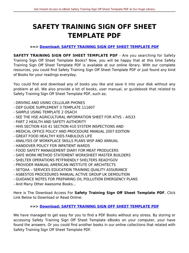 Available for pc, ios and android. Savesave safety training sign in sheet.pdf for later. Safety signs must be used whenever a hazard or danger can not be avoided adequately or reduced in another way.